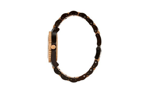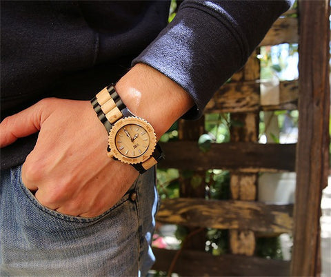 *Due to the season and age of the wood chosen for your unique WeWood Timepiece, colors may be darker or lighter (within reason and hue) than the photo.The WeWood Date black/beige is a mixture of maple wood (beige) and Blackwood. Blackwood is a black colored hardwood native to Tasmania's forests and is the perfect timber for delicate craftswork. It is easily worked, very stable and long lasting. This dirty blonde colored wood is often used in smoke houses and in culinary arts. It's also used to create many musical instruments like the violin and the guitar.